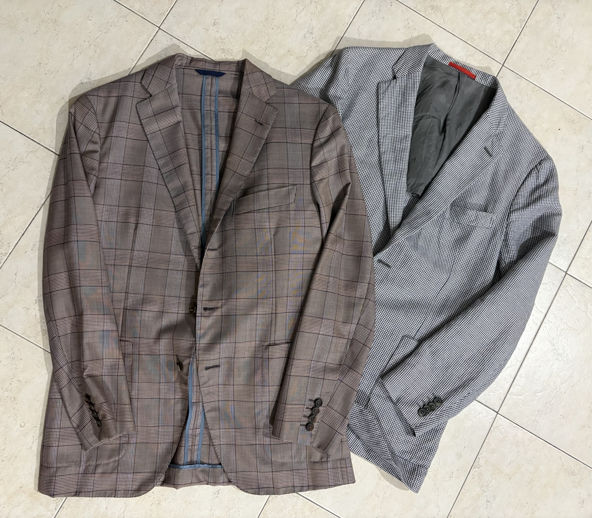 基本的にはどちらも副資材は少なく、非常に軽く作られています。ただセイラーの方は芯地がより使われているので、よりジャケットを着ているという感じがします。